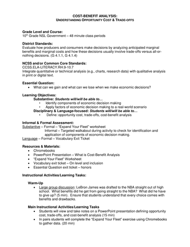 PFL Opportunity Cost Lesson ↸ Time: 15 Minutes Requires: PFinLab Curriculum Site License, ... Have students complete this worksheet that asks them to plan a dinner party with a budget of ... addresses the different opportunity costs of continuing your education after high school or going straight into the workplace. It breaks the thought ...