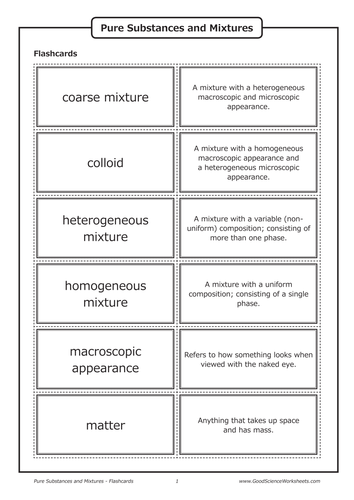 Pure substances and mixtures worksheets and online activities. Free interactive exercises to practice online or download as pdf to print.