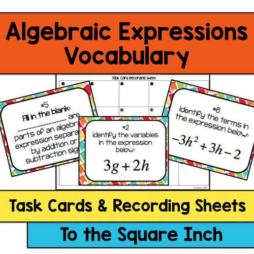 CHAPTER 8 CHAPTER 8A Parts of an Algebraic Expression An expression containing variables, numbers, and operation symbols is called an algebraic expression. is an example of an algebraic expression. Each expression is made up of terms. A term can be a signed number, a variable, or a constant multiplied by a variable or variables. Each term in an ... Results 1 - 23 of 23+ — Identify parts of an algebra expression and match algebra ... Worksheet for students to practice identifying different parts of an ... Results 1 - 24 of 2700+ — Identifying Parts of an Algebraic Expression ... With this 2-sided worksheet and key, you can check your students' understa. Results 1 - 24 of 1900+ — Browse identifying parts of an expression worksheet resources on ... The parts of an algebraic expressions are listed in table form ...