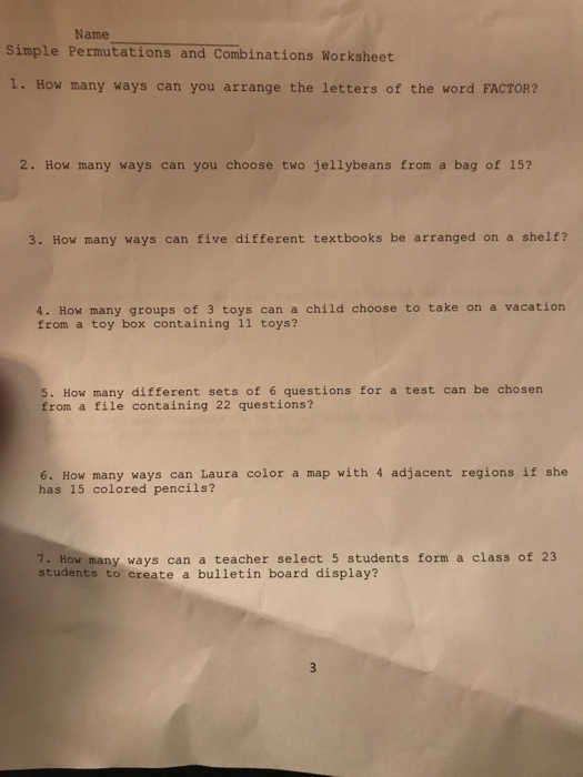 Permutations and combinations worksheet