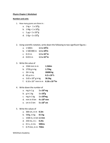 Chemistry conversions worksheet with answers