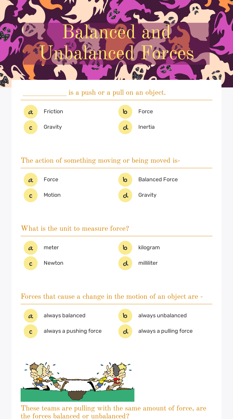 Balanced vs unbalanced forces worksheet answers