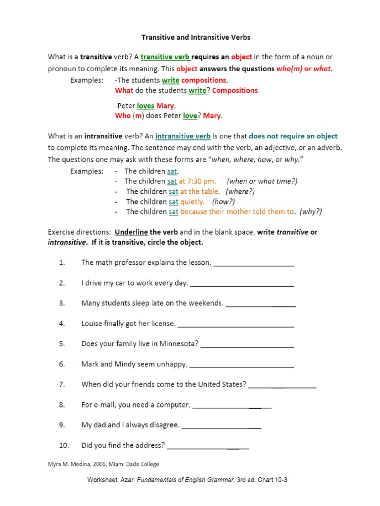 A collection of downloadable worksheets, exercises and activities to teach Transitive and intransitive verbs, shared by English language teachers. Welcome to ESL Printables, the website where English Language teachers exchange resources: worksheets, lesson plans, activities, etc.