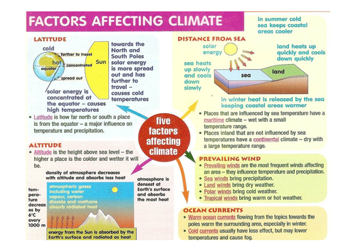 Factors influencing Climate | Teaching Resources File previews. pptx, 21.34 MB. docx, 112.59 KB. An interactive and engaging lesson on the factors influencing climate and the distribution of the world's climate zones. Suitable for KS3 and KS4. This is part of a larger SOW which can be downloaded from my page. Feedback appreciated; enjoy!