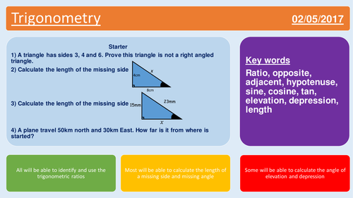 Angles of Elevation and Depression | Teaching Resources Angles of Elevation and Depression. This PowerPoint presentation and accompanying worksheet have been created to scaffold how to solve trigonometry questions involving angles of elevation and depression. It is aimed at year 10 5.2 and provides three worked examples.