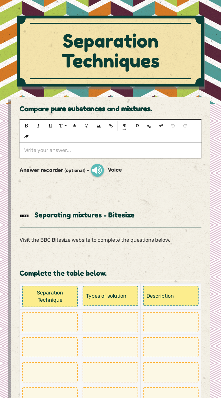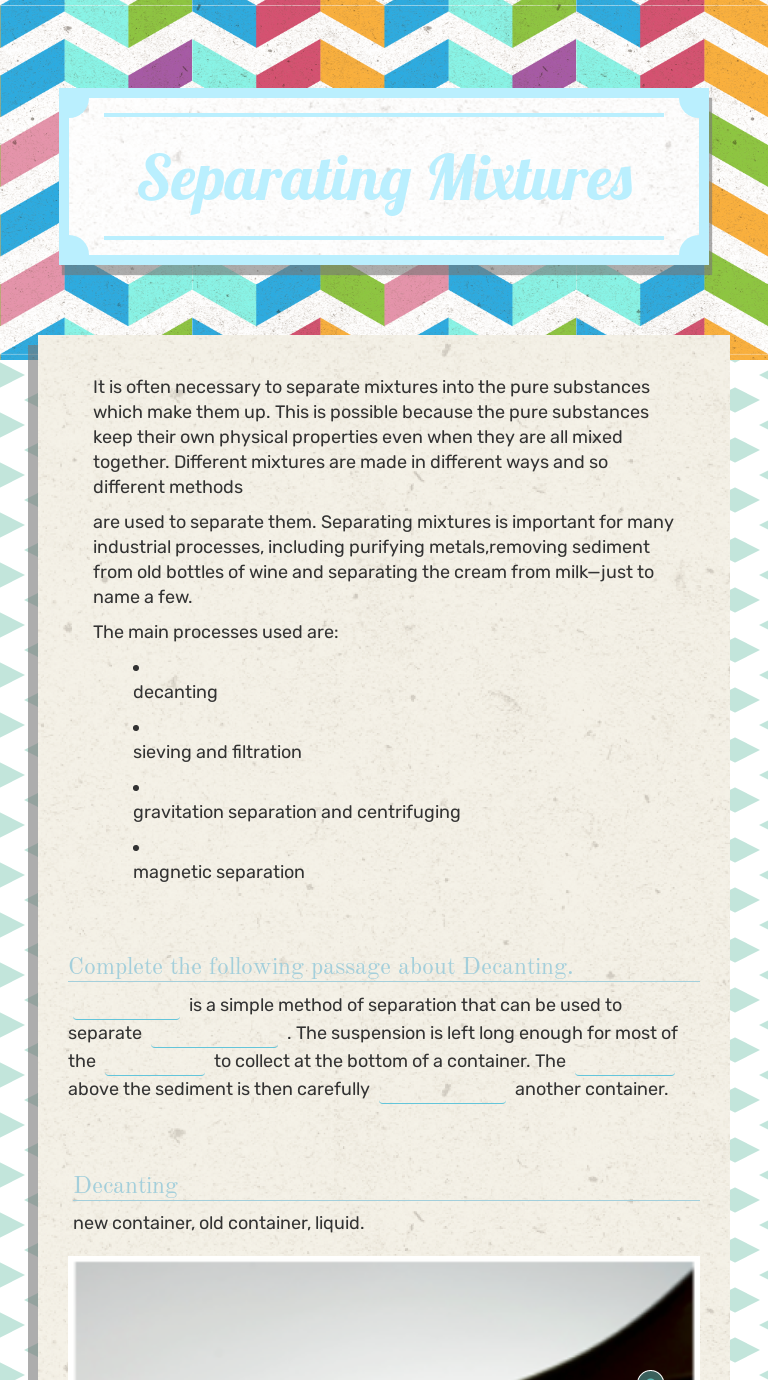 Separation of mixtures worksheet