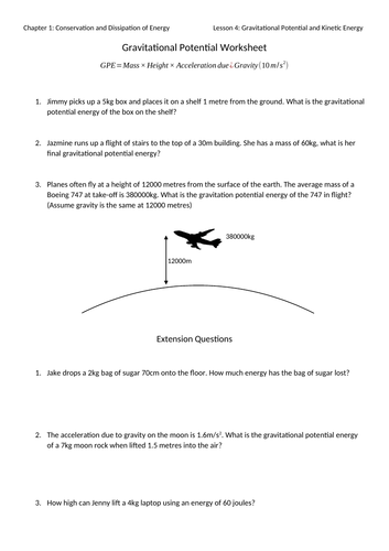Calculating Gravitational Potential Energy, Height, Mass ... Calculating Gravitational Potential Energy, Height, Mass, Kinetic Energy, and Velocity Worksheet $ 3.00 This is a 19-problem worksheet on 4 pages (2 sheets, front and back sides).
