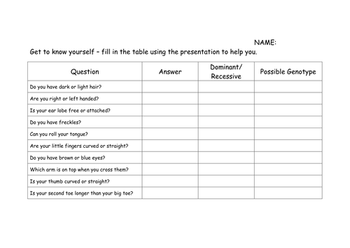 PDF Phenotype vs genotype worksheet answers Phenotype vs genotype worksheet answers There are 3 slides where students drag and drop vocabulary terms next to their definitions. Vocabulary: Genetics, Heredity, Traits, Homozygous, Heterozygous, DNA, Chromosomes, Phenotype, Genotype, Punnett Squre.The last slide is used for studetns to identify a cell, nucleus, chromosome and DNABONUPage 2This download is a general 20-