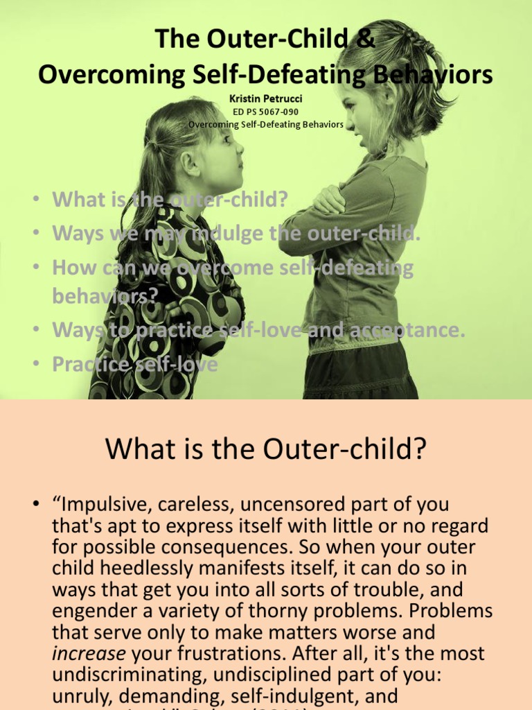 10+ Design Self Defeating Behaviors Worksheet - Countevery ... Jan 01, 2022 · Self-defeating behaviors are behaviors that move you away from the goals that you have set for yourself. Place Value Worksheet First Grade. Turn these into 1 or more daily practice. Self-sabotage can be self-defeating behavior or even just self-defeating thoughts and it usually shows up when things are going great.