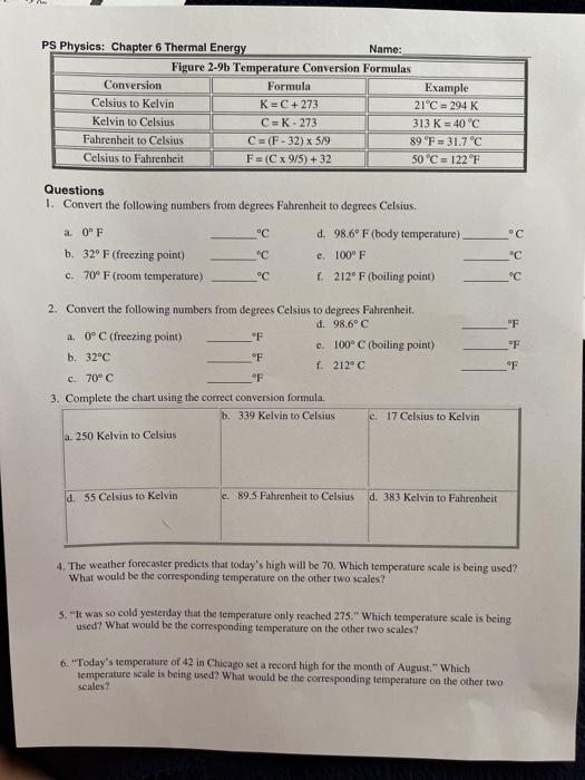 39 temperature conversion worksheet kelvin celsius fahrenheit