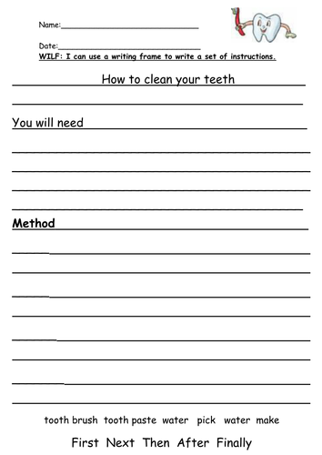 Instructional Writing - How to brush your teeth | Windsor Hill Primary... I want you to write a set of instructions on how to brush your teeth. Begin by looking at the PowerPoints and the examples of other instructions. Did you know that tooth decay is the #1 chronic childhood disease? Good news is that it can be prevented! Easily teach your kids why they should be... How to Brush Your Teeth Properly Step by Step - Dentistry Blogger It also covers how to brush your child's teeth properly and how to best look after your teeth and gums. The first step to brushing your teeth properly is buying the right electric toothbrush and using the right toothpaste. If you need help with choosing an electric toothbrush click here to find out more. The Best Printables on Steps to Brushing Teeth for Kids I can brush my teeth printable. These cards of steps for brushing teeth for kids are awesome in And tell them, "Don't forget to brush your teeth with a soft bristled brush, floss your teeth with To get these 'how to brush teeth" printable, add this to the cart, follow the instructions and the file will be... Dental Health Worksheets for Preschool and Kindergarten. Teeth Patterns Worksheet. This worksheet is all about dental health and putting the correct picture in a pattern. This craft involves cutting-out all the pages of the book about tooth-brushing and then pasting them together where it is This craft shows how important it is to brush each one of our teeth.