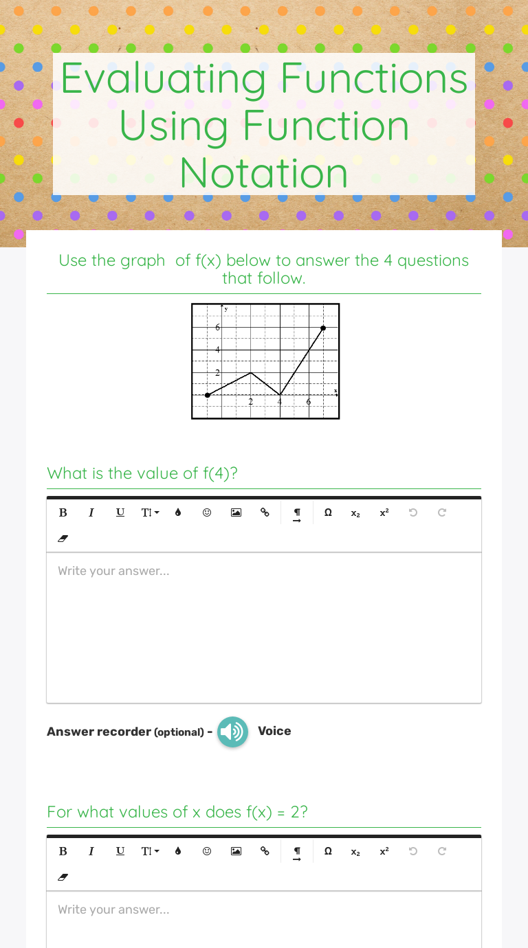Evaluating functions from a graph worksheet