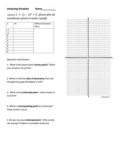 Graphing Parabolas Worksheets - Math Worksheets Center Graphing Parabolas Worksheets How to Graph a Parabola - Any point on the parabola is present equidistant from the focus and fixed straight line known as the directrix. For graphing parabola, we need to figure out the vertex and other points on sides of vertex to find out the path a point travel.