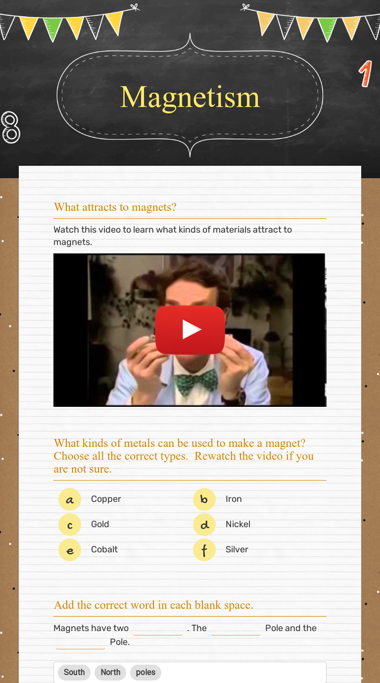 PDF Bill Nye Magnetism - Paulding County School District Don't worry, the worksheet is attached. • There are two sheets attached. One is the worksheet you were looking for and the other is the Video Guide Help to leave in the VHS or DVD case for a fellow teacher. • Please print out both sheets and place the Video Guide Help sheet in the VHS or DVD case. • The Video Guides are constantly being Bill Nye Magnetism Worksheets & Teaching Resources | TpT Bill Nye and The Magic School Bus Worksheets - Magnetism and Electricity Bundle. by. Love Duck. 1. $10.50. $8.00. Bundle. This is a bundle of worksheets for episodes of Bill Nye the Science Guy, The Magic School Bus, and The Magic School Bus Rides Again that discuss magnetism and electricity. kledingkeuzes.nl 2022-03-06 · Offline Access basics answer keyEnergy worksheet answers - dil. The solar system. 5 Kepler’s Laws of Planetary Motion. The force causes the trailer to accelerate at 4 m/s2. Clicking/tapping the hot spot opens the Interactive in full-screen mode. Theories are not guesses or opinions, they are broad explanations supported by an enormous amount of evidence. … Bill Nye Magnetism Worksheet Answers - Worksheet Answer Key Bill Nye Magnetism Worksheet Answers - Every moms and dad longs for his or her youngster to be able to communicate properly in English. To do this, you need to have superb command of the language's grammar. Needing to learn the 8 words and also phrases is the first step in a child's journey towards grasping grammar.