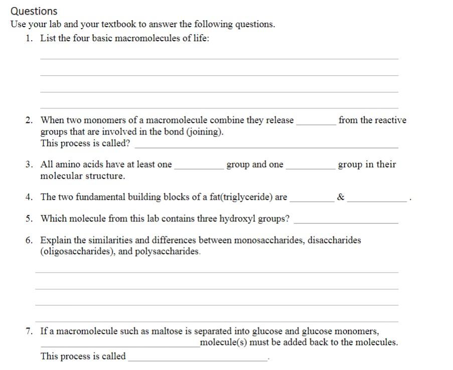 Building Macromolecules Activity Answer Sheet | GBGYABA ... Building macromolecules activity answer key displaying top 8 worksheets found for this concept. Organic compounds that contain both carbon and hydrogen atoms. Included in your download are 2 versions1. Organic compounds that contain both carbon and hydrogen atoms. Classes of organic compounds that are central to life on earth.