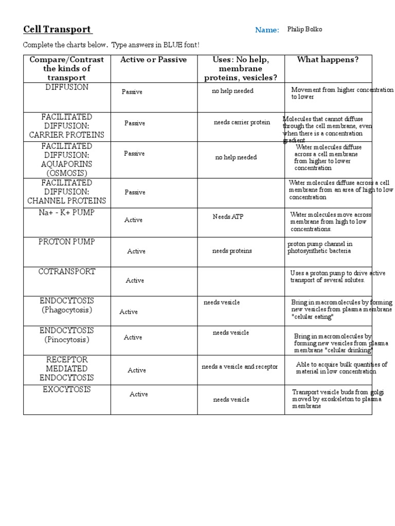 Cell membrane and tonicity worksheet. Cell Membrane And Tonicity Worksheet Cell Membrane And Tonicity Worksheet. Please observe if the scholar resides on-campus, your eligibility might range primarily based in your residence hall costs. If you need assistance determining your eligibility for additional loans, please contact an SFS Advisor. It is often a printed page that a child completes with a writing instrument. Worksheet generators are sometimes used to develop the PDF Cell Membrane Coloring Worksheet Cell Membrane Coloring Worksheet Composition of the Cell Membrane & Functions The cell membrane is also called the plasma membrane and is made of a phospholipid bilayer . The ... Label the tonicity for each solution (isotonic, hypotonic, or hypertonic): DOCX Cell Membrane & Tonicity Worksheet Cell Membrane & Tonicity Worksheet Plasma Bilayer Cholesterol Heads Tails Chains Lipid Protein Transport Proteins Freely Polar Glucose Diffusion Energy With Composition of the Cell Membrane & Functions SKETCH AND LABEL a phospholipid coloring the heads red and the tails blue. CELL MEMBRANE & TONICITY WORKSHEET.docx - NAME: Bessie ... View CELL MEMBRANE & TONICITY WORKSHEET.docx from ENGL CO150 at College of Charleston. NAME: Bessie Guillen DATE : 10/6/2020 PERIOD Biology 10B Cell Membrane & Tonicity Worksheet Composition of the