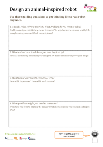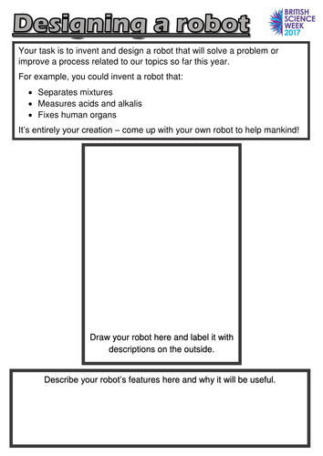 Design your own Robot | Teaching Resources Design your own Robot. Subject: English. Age range: 7-11. Resource type: Worksheet/Activity. (no rating) 0 reviews. Shine Resources. 4.142465753424657 601 reviews. We understand how precious your time is and strive to create unique resources that are easy to implement in your classroom.