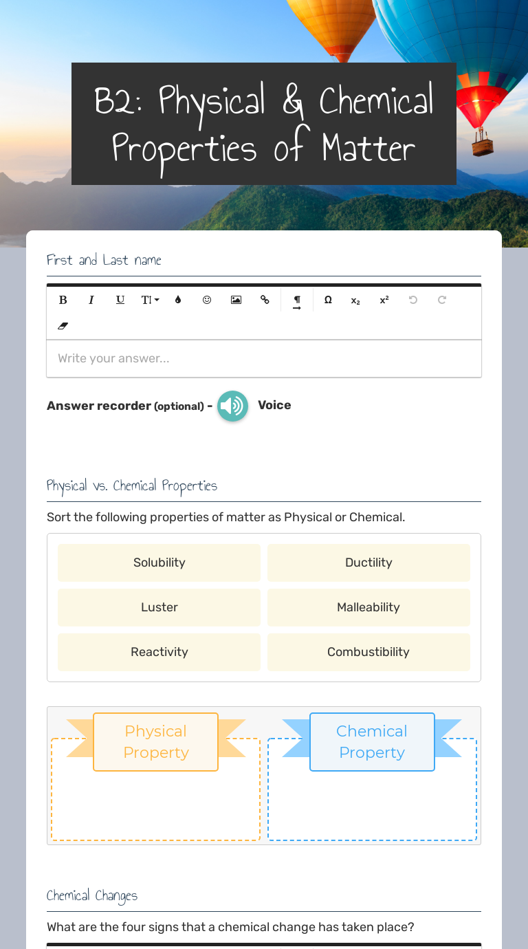 Physical and chemical properties and changes worksheet key