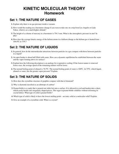 Kinetic molecular theory worksheet