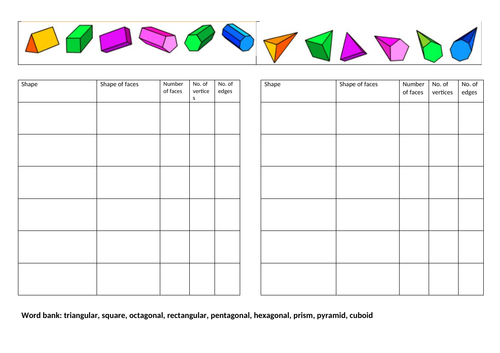 Prisms and pyramids worksheet