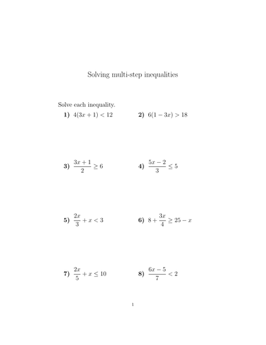 Solving multi step inequalities worksheet