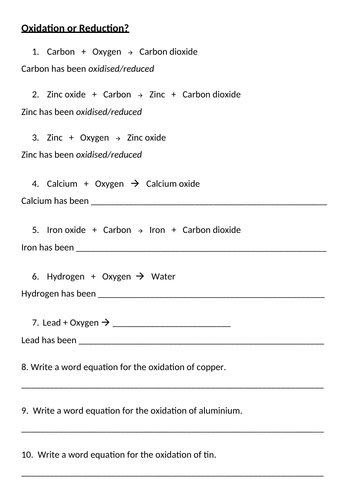 Oxidation number and redox worksheet | Teaching Resources report. 4. Useful resource with the rules clearly laid out, and a substantial number of straight forward questions for students to work through. Would be even better if it had the answers (but to be honest the questions are sufficiently straight forward that I doubt many teachers would really need them). Empty reply does not make any sense for ...