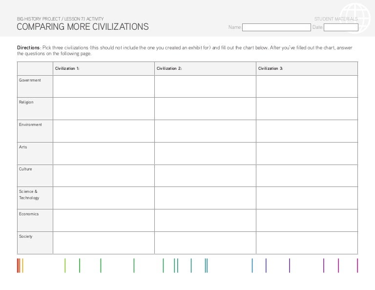Ancient Civilizations | Free Teaching Resources | Videos ... The Secret Jungle of the Maya. Deep inside a remote tropical rainforest are the ruins of the once-great Maya civilization. Technology is helping scientists learn more about the Maya. Read the Story. Maya Ruins Revealed. Cite textual evidence about the Maya's accomplishments. Get Worksheet. SOLUTION: HIS 103 Oakton Community College What Makes ... NAME: Instructions: Fill in the provided table, then answer the question about culture. In the What does it mean column, provide a definition for the feature. In the Evidence column, provide a specific example of that feature in a civilization. In the Page # (citation) column, provide information about where you found your information. If you use Acrobatiq, you only need to provide a page ...