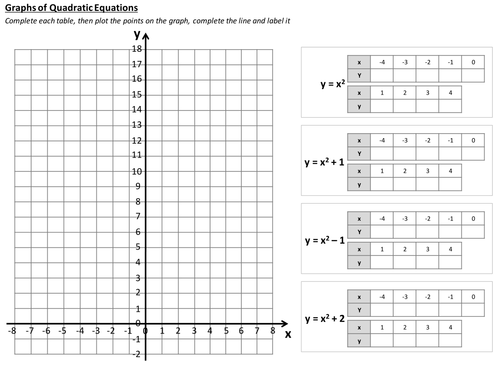 PDF Algebra Review Quadratic Functions Worksheet Algebra Review Worksheet Quadratic Functions Section: Name: Mr. Lin 1 Aim: Students will be able to explore the quadratic functions and understand the role of a in y = ax2 + bx + c. DoNow:!Graph the functions on graphing paper and compare their graphs:! 1. y = x2 x y 2.y = 2x2 x y 3. y = -x2 x y 4. y = -2x2