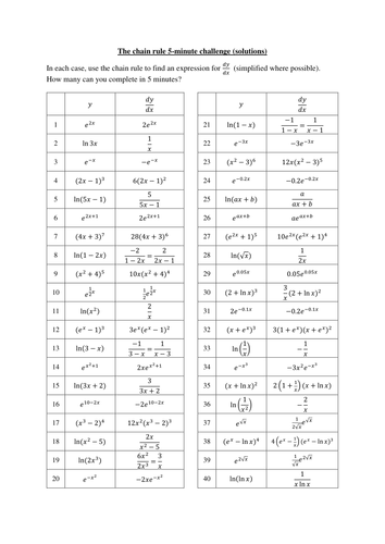Food chain activity - Live Worksheets Food chain online exercise for 6. You can do the exercises online or download the worksheet as pdf. Chain Rule Worksheets with Answers - DSoftSchools admin October 1, 2019. Some of the Worksheets below are Chain Rule Worksheets with Answers, usage of the chain rule to obtain the derivatives of functions, several interesting chain rule exercises with step by step solutions and quizzes with answers, …. Once you find your worksheet (s), you can either click on the pop-out icon or download ... Calculus I - Chain Rule (Practice Problems) - Lamar University Section 3-9 : Chain Rule For problems 1 - 27 differentiate the given function. f (x) = (6x2+7x)4 f ( x) = ( 6 x 2 + 7 x) 4 Solution g(t) = (4t2−3t +2)−2 g ( t) = ( 4 t 2 − 3 t + 2) − 2 Solution y = 3√1 −8z y = 1 − 8 z 3 Solution R(w) = csc(7w) R ( w) = csc ( 7 w) Solution G(x) = 2sin(3x+tan(x)) G ( x) = 2 sin ( 3 x + tan ( x)) Solution ((EXCLUSIVE)) Page 188 Pre-algebra With Pizzazz Answers Crack ... crack the code pre-algebra with pizzazz page 84 answers, sum code pre algebra with ... pre algebra with pizzazz worksheet answers page 47 chain code, ...