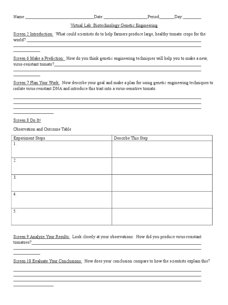 PDF Dna Extraction Lab Answers Ahead of dealing with Strawberry Dna Extraction Lab Worksheet Answers, remember to are aware that Instruction will be our key to an even better another day, along with understanding won't only end once the classes bell rings.Of which becoming stated, we all supply you with a a number of very simple still beneficial Check Virtual Lab Dna And Genes Worksheet Answer Key ... here is all you have to to learn about virtual lab dna and genes worksheet answer key, gene tech inter assignment ap biology unit 3 vlab 6 ap biology unit 3 cell division geics virtual lab 6 dna and genes instructions 1 open the virtual lab entitled dna and course hero dna extraction virtual lab worksheet answers promotiontablecovers dna … Virtual Labs - University of Utah DNA Extraction. DNA is extracted from human cells for a variety of reasons. Try this virtual laboratory to extract DNA from human cells. Dna Extraction Teaching Resources | Teachers Pay Teachers Strawberry DNA Extraction Lab, Genetics Lab, Isolating DNA by TeachBig 57 $4.00 Zip Zip file containing everything you need for this lab! Teacher instructions, Pre-lab powerpoint and notes, lab handout with post lab questions and lab write up guidelines! Easy to follow instructions and you can get all your materials at the grocery store!