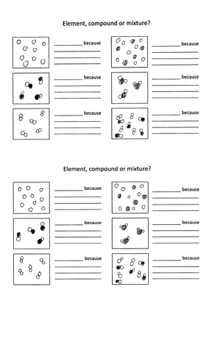 Element compound mixture worksheet answers. Element Compound And Mixture Worksheet Answers These compounds are composed of positive and negative ions formed by adding or subtracting electrons from neutral atoms and molecules. Technology and society impact each other. Click on the title... Elements Compounds Mixtures Worksheet Answers March 15, 2022 admin Fantastic Elements Compounds Mixtures Worksheet Answers - These traits flip worksheets into calculators, form-creation instruments, databases and chart-makers. Besides offering these advantages, worksheet information is straightforward to entry from different programs. Elements And Compounds Worksheet Answers - Agaliprogram Elements And Compounds Worksheet Answers. A mixture is a group of elements or compounds that interact but don't bond, and which are still distinct by physical means. A pure substance containing only one kind of __atom____. Elements & compounds worksheet from A mixture of two compounds two types of compounds. Element, Compound or Mixture? Worksheet | Beyond This worksheet tasks your students with labelling different particle models as an element, compound or mixture. This helps them familiarise themselves with key KS3 Chemistry concepts as well as serves as an introduction to reading particle models.With an included answer sheet, marking your students' work is simple and quick, making sure you can give your students the key support they need as ...