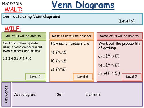 Venn Diagrams - TES doc, 14.54 KB. 2 Worksheets on drawing/reading Venn diagrams with increasing difficulty.