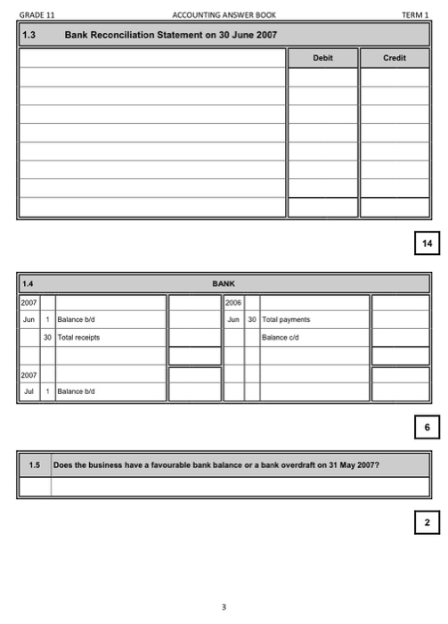 PDF lesson six - Home / Homepage Next, students learn to complete several of the forms necessary for opening and maintaining a bank account. They will practice completing these forms in a step-by-step manner. Finally, students use basic mathematics skills to keep a running record of their bank accounts and to reconcile their monthly bank statements. lesson 6 student ... Bank Reconciliation Lesson Plans & Worksheets Reviewed by Teachers For Teachers 10th - 11th Students create bank reconciliation spreadsheet. In this algebra lesson, students discuss the basics about business, money and bank accounts. They use a bank reconciliation statement correctly. + Lesson Planet: Curated OER The Truth Shall Set Them Free? For Teachers 6th - 12th Bank Reconciliation Statement interactive worksheet Live worksheets > English. Bank Reconciliation Statement. Reconciling the cash book with the Pass book or the bank statement. ID: 1240482. Language: English. School subject: Principles of Accounts (POA) Grade/level: 12. Age: 16+. Main content: Bank reconciliation statement. CBSE Class 11 Accountancy Bank Reconciliation Statement Worksheet Set A Class 11 Accountancy students should refer to the following printable worksheet in Pdf for Bank Reconciliation Statement in standard 11. This test paper with questions and answers for Grade 11 Accountancy will be very useful for exams and help you to score good marks Class 11 Accountancy Worksheet for Bank Reconciliation Statement