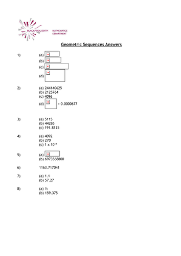 Geometric sequences worksheet answers