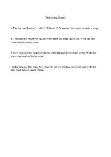 KS2 Translation of Shapes Sheets - Translating Shapes Year 4 In Geometry, “translation” means to move, without rotating or resizing. In order to correctly translate a shape, each point must move the same distance. Use these differentiated worksheets to help your KS2 students develop their understanding of how to translate shapes in a one-quadrant grid. The resource asks students to identify how certain shapes have been translated …