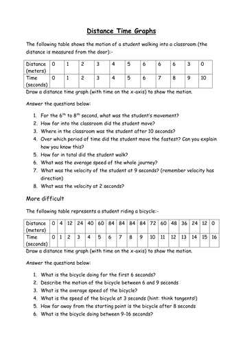 Distance Time Graph Worksheet Activity | Graphing - Twinkl This Distance Time Graph Worksheet Activity includes two graphs, each with corresponding questions, to provide students with practice and test their comprehension. The distance/time graphs included require students to analyze and answer questions about.