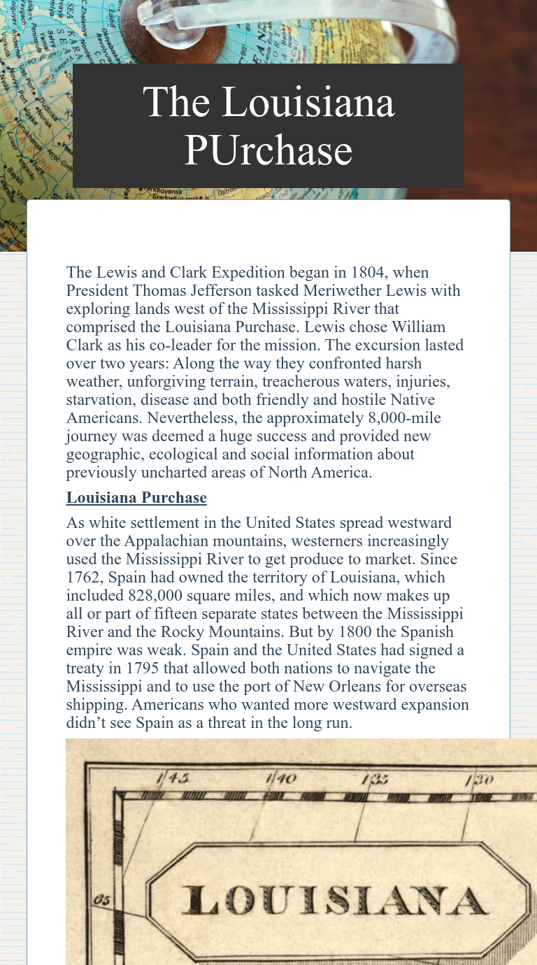Westward Expansion: Louisiana Purchase worksheet ID: 1473570 Language: English School subject: Social Studies Grade/level: 6-8th Age: 12-14 Main content: US History Other contents: Add to my workbooks (7) Download file pdf Embed in my website or blog Add to Google Classroom