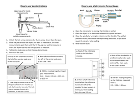 Micrometer and Vernier Calliper Measurement Worksheet doc, 2.21 MB An 8 page activity that shows the methods of reading micrometers and vernier callipers for design, technology, and engineering applications. Ideal as a cover activity during teacher absence.