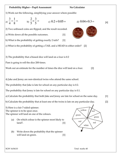 Probability worksheet high school