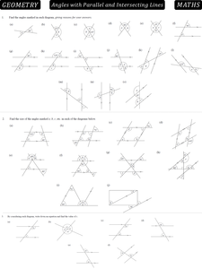 Parallel Lines and Transversals Worksheets - Cuemath Parallel lines and transversals worksheets will help kids in solving geometry problems. Some real-life examples of parallel lines cut by a transversal are zebra crossing on the road, road and railway crossing, railway tracks with sleepers, and windscreen wipers in cars. Printable PDFs for Parallel Lines and Transversals Worksheets