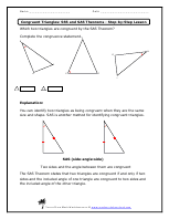 Answers Sss Worksheet Triangle Sas Congruence Vs In order to be congruent triangles must meet one of the four conditions: ASA, SAS, SSS or RHS ASA: Two angles and the side between them are equal SAS: Two sides and the angle between them are equal SSS: All three sides are equal RHS: They are right angled, the hypotonuse and one other side are equal For each pair of triangles select the correct ...