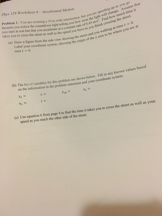 DOC Uniformly Accelerated Particle Model Worksheet 4: - Weebly Constant Acceleration Model Worksheet 4. Quantitative Acceleration Problems (8 questions total) SHOW ALL WORK AND INCLUDE UNITS!!! 1. A racecar can go from rest to 36 m/s in 12 seconds. If the racecar started 17 m ahead of the starting line and has an acceleration of 3 m/s/s, what is the position of the car after 12 seconds? 2.