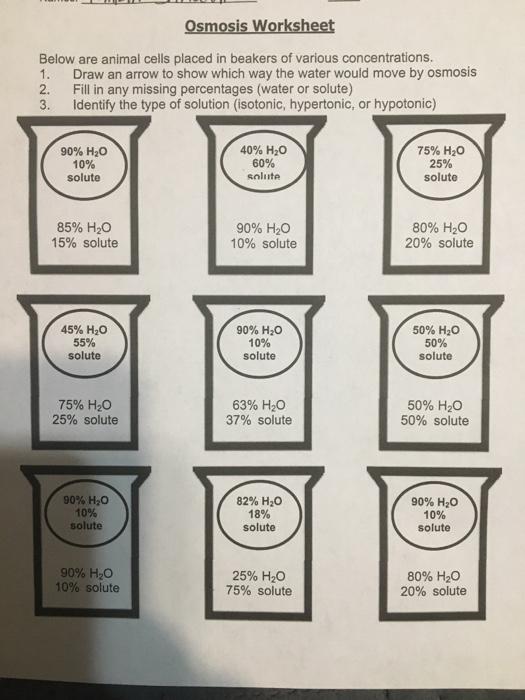 allinonehighschool.com › biology-answers-2Biology Answers – Easy Peasy All-in-One High School Lesson 6 It responds to the environment. It grows and develops and dies. It produces offspring. It maintains homeostasis. It has complex chemistry, and it consists of cells. It obtains and uses energy. The four unifying principles of biology are cell theory, gene theory, homeostasis and ev osmosis-practice-sheet answers.docx - Osmosis Worksheet... Osmosis Worksheet Below are animal cells placed in beakers of various concentrations. 1. Hypertonic, out of the cell, shrink and die. 2. Hypotonic, into the cell,burst and die. 3. Hypotonic, into the cell,burst and die. 4. Hypotonic, into the cell,burst and die. 5. Hypertonic, out of the cell,shrink and die. 6. Osmosis Worksheet Teaching Resources | Teachers Pay Teachers 4.9. (102) $2.50. Zip. This worksheet and answer key will help teach your students the biology behind Osmosis Jones. This worksheet along with the movie Osmosis Jones to reinforce concepts about the human body and immune system with your students. Worksheet includes character analysis as well as questions that deal with different major body ... Diffusion and Osmosis Worksheet KEY 08 - StuDocu Unit 5 Cell Biology; Water Purification Lab Report; Answers - Market Segmentation Activity Worksheet; Samuelson's model of business cycle; Criminal law practice exam 2018, questions and answers ... Diffusion and Osmosis Worksheet. Diffusion is the movement of particles from areas of higher concentration to areas of lower concentration. It is a ...