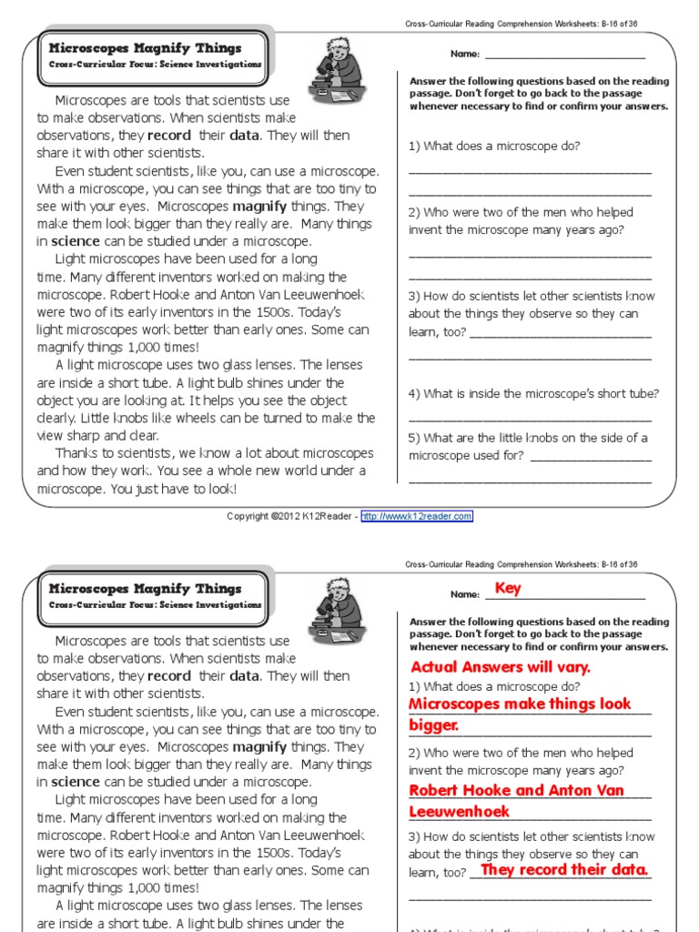 Microscope worksheet answer key