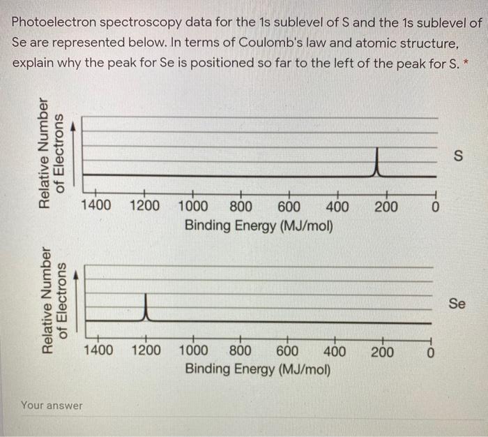 Quiz & Worksheet - Photoelectron Spectroscopy | Study.com Instructions: Choose an answer and hit 'next'. You will receive your score and answers at the end. question 1 of 3 The 1s electrons for helium have a binding energy of 2.37 MJ/mol, while the 1s...