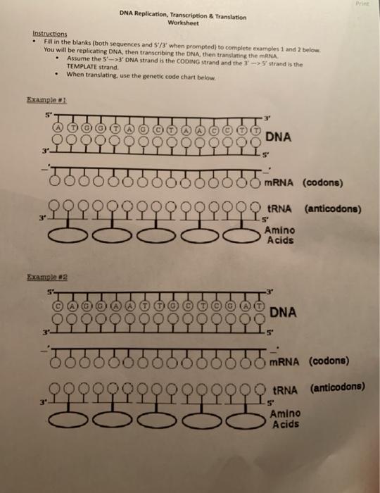 DNA Replication/Transcription/Translation Lab Worksheet ... - StuDocu Understanding DNA Transcription and Translation Directions: Complete the following questions. Questions 1- 3 can be submitted on the same document as the Understanding DNA Replication assignment. Refer to Figure 1 as it illustrates the process of DNA transcription, translation, and protein synthesis.
