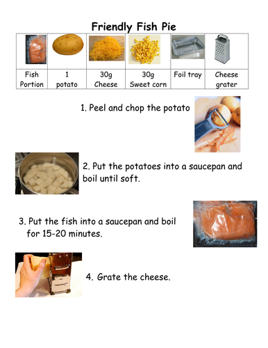 Reading Recipes Teaching Resources | Teachers Pay Teachers Here is a set of worksheets to practice comprehension of recipes. Included in this product are 10 recipes plus 2 worksheets for each recipe. Both recipes and worksheets include 2 levels: written and with pictures. The texts are the same for each level, but one level includes pictures in order to aide with comprehension.