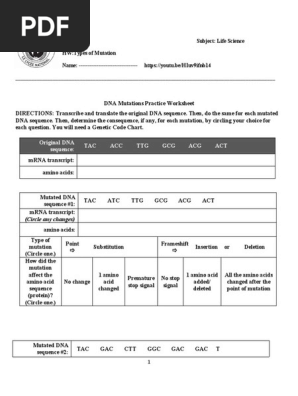 Dna mutations practice worksheet. study.com › academy › practiceQuiz & Worksheet - Reading Scientific Graphs & Charts - Study.com This quiz/worksheet will ask you questions on identifying different types of charts, parts of charts and variables displayed in them. Quiz & Worksheet Goals In these assessments, you will be ... › science › high-school-biologyMolecular genetics | High school biology - Khan Academy DNA serves as the genetic material for all living organisms. Learn more about the structure and synthesis of this remarkable molecule, and how genes in your DNA provide instructions for building proteins. afn.netAmerican Family News Aug 02, 2022 · American Family News (formerly One News Now) offers news on current events from an evangelical Christian perspective. Our experienced journalists want to glorify God in what we do. learn.genetics.utah.edu › content › basicsTranscribe and Translate a Gene - University of Utah Home; Basic Genetics; Transcribe and Translate a Gene; Transcribe and Translate a Gene. CGA GUA ACG UUG Phenylalanine Aspartic Acid Asparagine Valine Remember that A in DNA pairs with U in RNA.