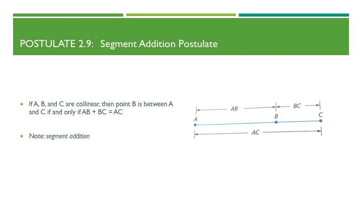 Finding missing angles (practice) | Geometry | Khan Academy Practice using knowledge of vertical, complementary, and supplementary angles to find a missing angle. Practice using knowledge of vertical, complementary, and supplementary angles to find a missing angle. If you're seeing this message, it means we're having trouble loading external resources on our website. If you're behind a web filter, please make sure that the domains … Segment Addition Postulate: Definition & Examples - Study.com 15.10.2021 · Examples. Let's take a look at some different examples. Example 1: Let us look at a line segment on our body: our leg! Our leg has an endpoint A, the top of your thigh, and endpoint C, your ankle ...