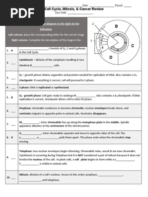 Virtual Lab: The Cell Cycle and Cancer Worksheet - Academia.edu Virtual Lab: The Cell Cycle and Cancer Worksheet 1. In which phase of mitosis do each of the following occur: a. Centromeres split and chromosomes move ... Virtual Lab Cell Cycle and Cancer Worksheet Free Essay Example What data did you use to answer this question? I compared the percentages of each tissue from the Mitotic Index in normal and cancerous tissue. The data ... The Cell Cycle and Cancer Worksheet - Virtual Lab - Course Hero Virtual Lab:The Cell Cycle and CancerWorksheetDirections: Highlight your answers in red.1.In which phase of mitosis do each of the following occur:a.